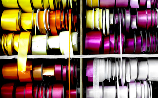 Fils à coudre DMC, Güterman, fils à broder DMC, fermetures éclair Prestil Eclair, YKK, grand choix de rubans, galons, cordons, dentelles, biais, élastiques, aiguilles, épingles, ciseaux, boîtes à couture, motifs thermocollants…
